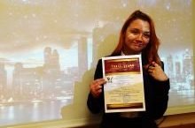 За победу в номинации « Креативный подход» в конкурсе «Игрушка для мега Елки», ученица 1 б класса Хайруллина Регина, (классный руководитель Попова Аделя Наильевна) награждена Грамотой.