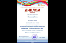 Поздравляем Новикову Анну, ученицу 8б класса, с победой в дистанционном мероприятии по математике «В поисках золотого пера»(учитель Гильмиева Г.Г.). Аня показала прекрасные знания по математике и получила диплом I степени. Так держать!!!