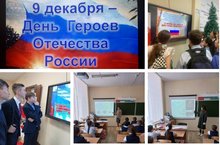 9 декабря в гимназии прошли классные часы, посвященные Дню героя Отечества, на которых вспоминали героев земли Российской: А. Невского, Д. Донского, К. Минина и Д. Пожарского, А. В. Суворова, М. И. Кутузова, Г. К. Жукова и других славных сынов Отечества. Для всех классов прошел единый классный час «Дни воинской славы России».