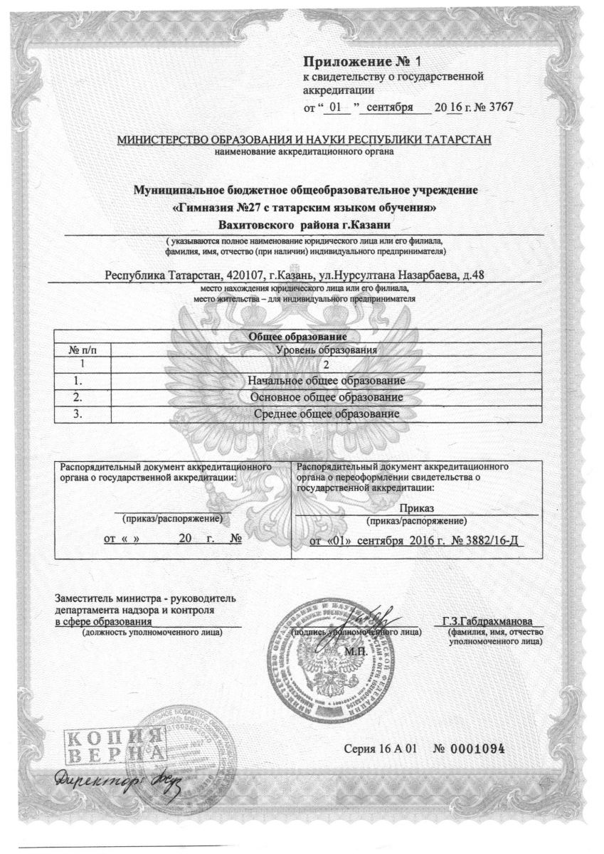| Короткое название: | МБОУ "Гимназия № 27 с татарским языком обучения" |