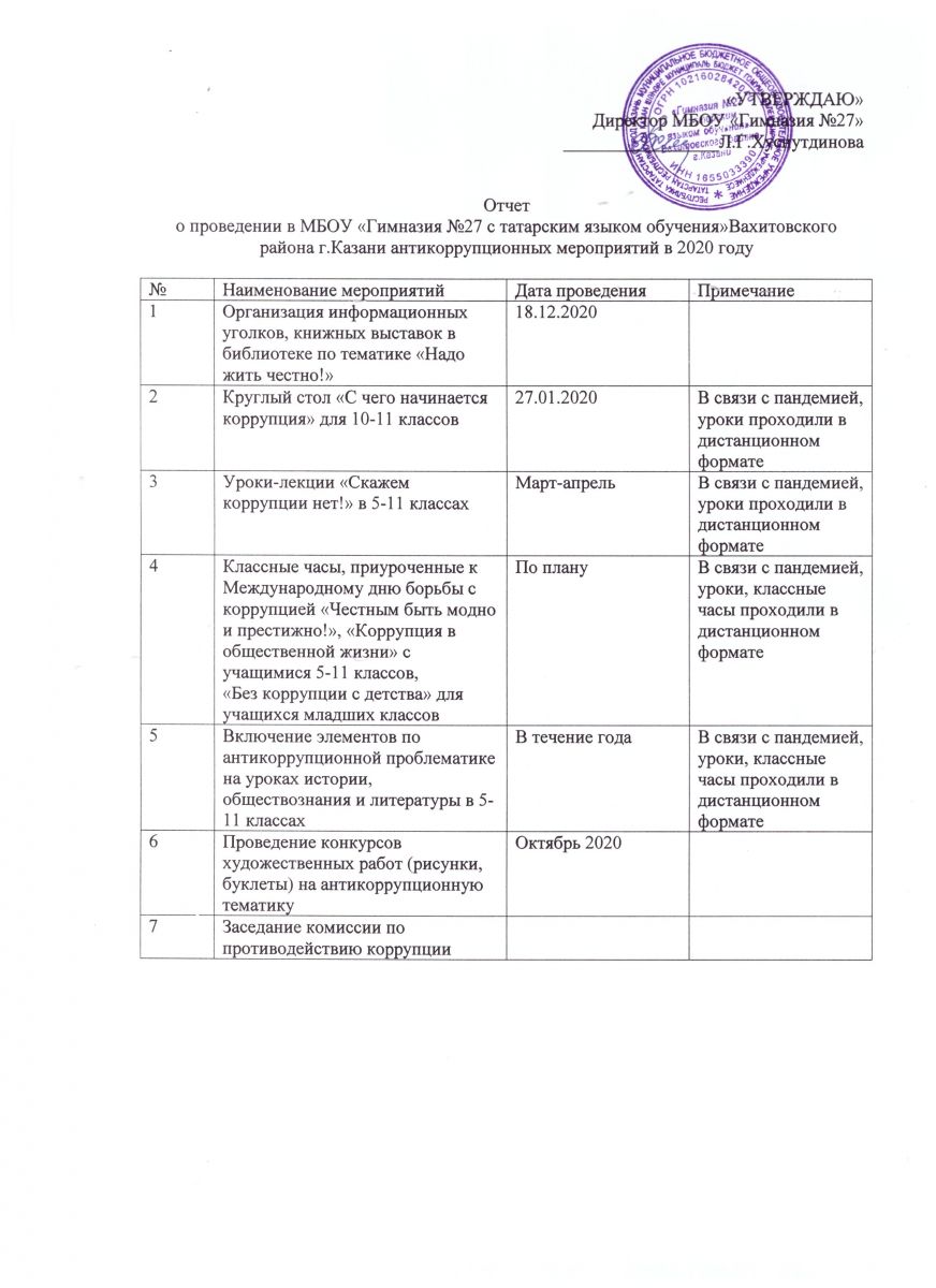 Отчет о проведении антикоррупционных мероприятиях в 2020 году
