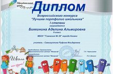 Ученица 9 А класса Аделина Биккинина лауреат I степени Всероссийского конкурса «Лучшее портфолио школьника». Поздравляем победителя и ее научного руководителя Руфину Ильдаровну Самигуллину!