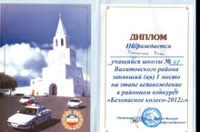 Поздравляем ученицу 3а класса Халиуллину Вику занявшую 1 место на этапе веловождения в районном конкурсе "Безопасное колесо-2012"