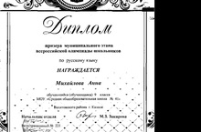 Михайлова Анна, ученица 9 Р класса СОШ №41, стала призером муниципального этапа всероссийской олимпиады школьников по русскому языку. Поздравляем! Молодец!