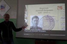Алексей Петрович Маресьев был одним из самых легендарных персонажей Великой Отечественной войны. Советский лётчик-ас, который стал идеалом мужества сразу для нескольких поколений советских людей. Из-за тяжёлых травм лишившийся обеих ног, с протезами вернулся в строй и продолжал летать. 20 мая 2016 года в нашей школе прошли линейки и классные часы, посвящённые столетию со дня рождения героя Великой Отечественной войны.