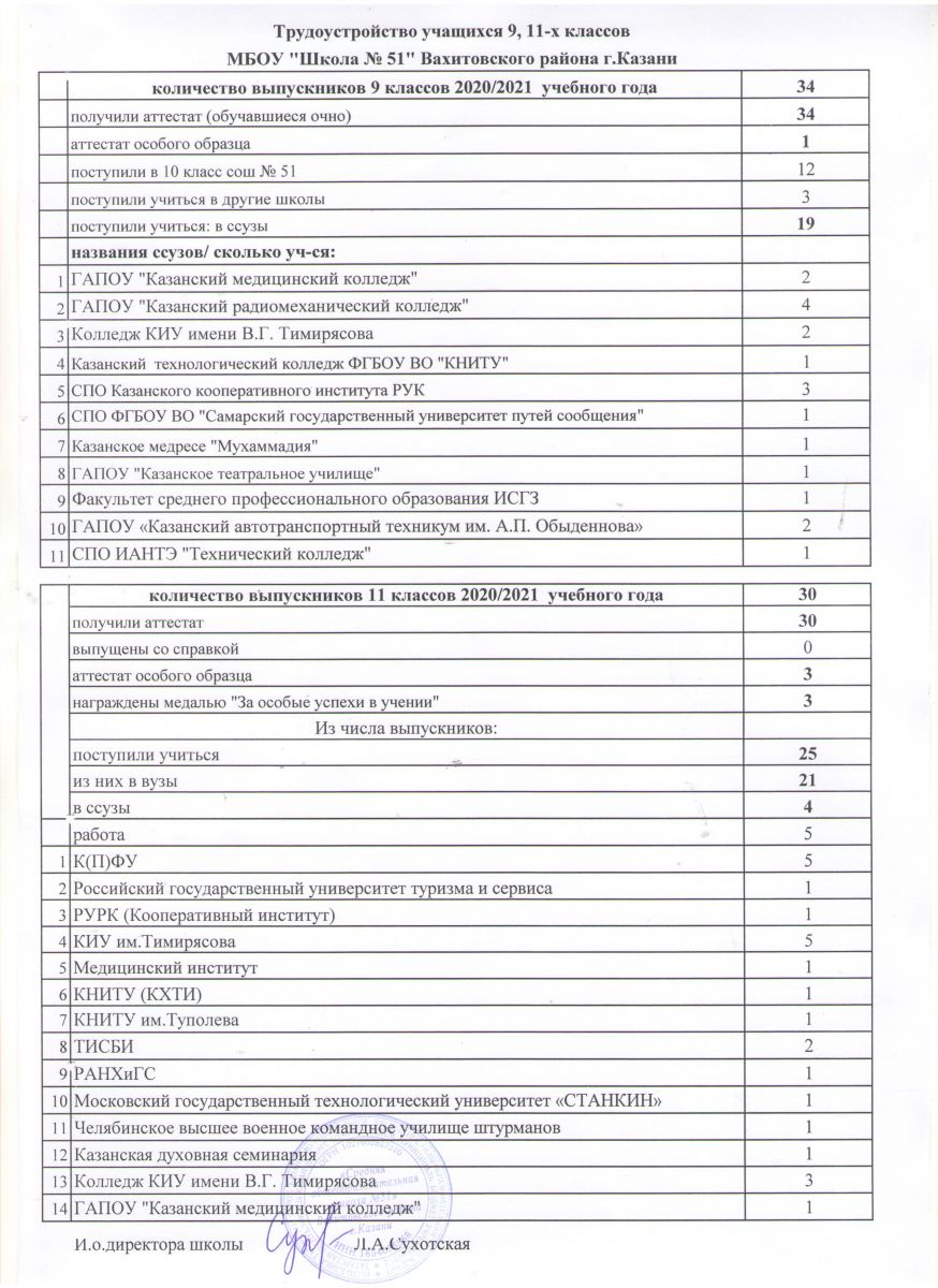 Школа №51 вправе гордиться своими выпускниками. Они успешно поступают в лучшие высшие учебные заведения Республики Татарстан, а в дальнейшем становятся профессионалами своего дела в разных областях жизни: политической, экономической, социальной, культурной.