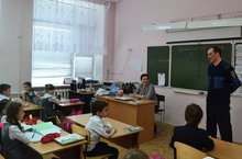 11 марта 2016г инспектор ГИБДД Ахмадеев А.М. прочитал лекцию на тему: «Правила безопасности поведения в период весенних каникул» с учащимися 1А класса.
