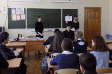 Одна из форм психолого-педагогической работы в школе это профориентационное направление в старших классах, которое опирается на систему основных факторов, определяющих формирование профессиональных ресурсов личности и пути ее реализации. 27.02.2016 г. был проведен классный час в 8 «Б» классе «Мои профессиональные намерения». Цель: формирование актуального для подростков «информационного поля» в мире профессий. Обеспечение средствами самопознания, развитие навыков, умений по целеполаганию и планированию.Формы работы: ролевые игры, видеофильм, презентация, беседа. -