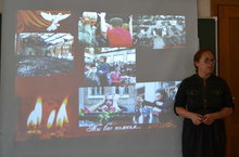 После завершения учебной эвакуации с учениками 8б класса был проведён урок безопасности на тему: «С огнём не шутят».