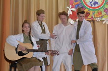 3 октября 2014г. в школе прошли мероприятия, посвященные «Дню учителя», которые начались с праздничного чествования учителей в фойе. Учащиеся 11А класса встречали педагогов в необычной форме: с красными галстуками и знаменем пионерской организации, звучали пионерские песни. После уроков состоялся праздничный концерт, где артисты поздравляли учителей песнями, танцами, сюжетом из юмористического журнала «Ералаш». Необычным подарком стал видеофильм выпускников 2014 года. Традиционно в наших концертах принимают участие не только ученики, но и педагоги нашей школы. Всем понравилась видеозапись сценки «Воспитание по телефону» в исполнении учителя начальной школы Гайнуллиной Альбины Шавкатовны. Педагог-организатор Асылгараева Лилия Фаритовна подарили музыкальный подарок - песню «Музыка нас связала».