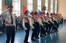 25 апреля 2022г в рамках Единого дня поднятия флагов, в спортивном зале провели общешкольную линейку. Знаменная группа торжественно внесла флаги и после чего все участники линейки исполнили гимны Российской Федерации и Республики Татарстан.