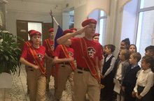 Последняя учебная неделя ноября в нашей гимназии началась с исполнения гимна и выноса знамени. Тема классных часов сегодня посвящены Символам России.