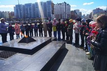 В парке им.Горько у Вечного огня ребята возложили цветы и минутой молчания почтили память героев-прадедов!!!