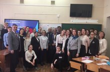 В рамках Мирового чемпионата по профессиональному мастерству WordSkills "Одна страна - одна школа" в нашей гимназии состоялась встреча с делегацией государства Индии. Во время встречи гости посетили школьный музей Великой Отечественной Войны, побывали на занятиях кружка "Волшебные ручки" и на уроке английского языка, после чего состоялась деловая беседа о предстоящем совместном мероприятии в рамках чемпионата. В целом мероприятие прошло в теплой дружеской обстановке, гости были удивлены возможности свободного владения английским языком учащихся и педагогов гимназии и коннечно радушной встрече гостей.