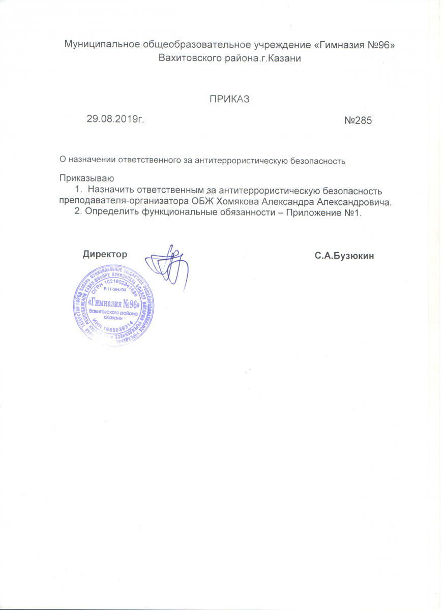 - Приказ о назначении ответственного за антитеррористическую безопасность