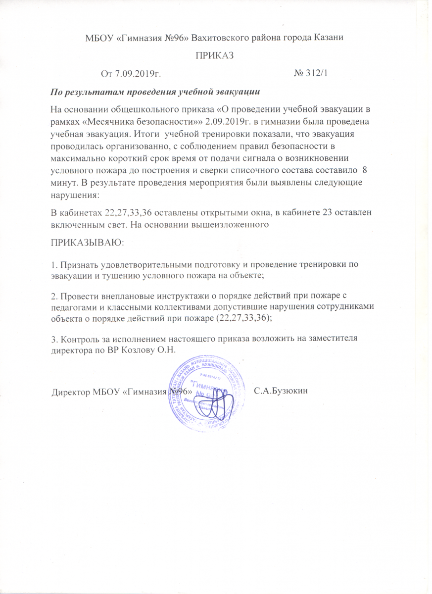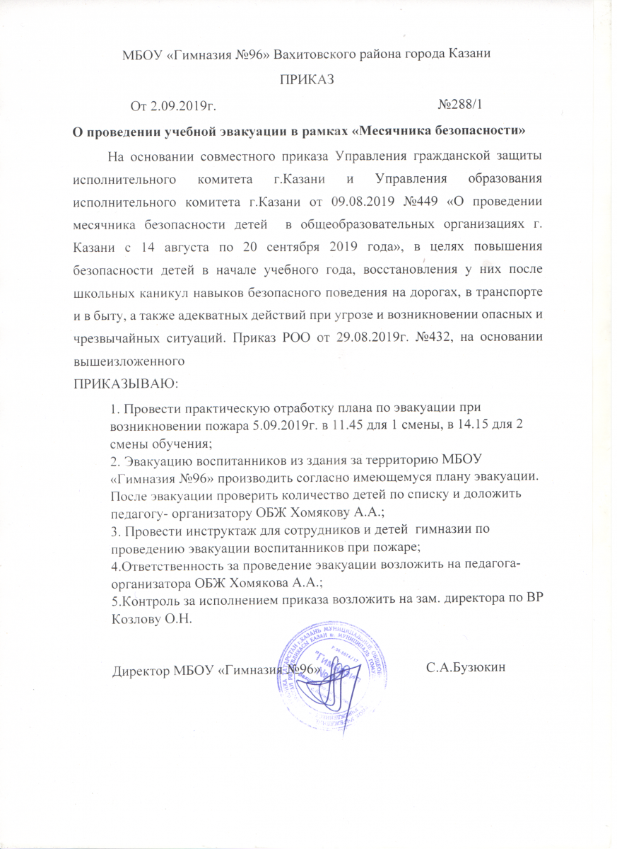 - Приказ о проведении учебной эвакуации в рамках «Месячника безопаности»