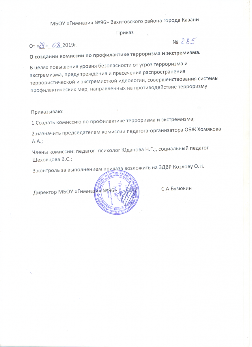 - Приказ о создании комиссии по профилактике терроризма и экстремизма