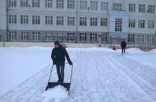 Каток нашей школы пережил снеговую атаку, но был быстро спасен нашими ребятами.