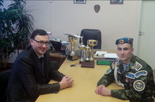 Сегодня в нашу школу пришел бывший ученик, а ныне доблестный боец "крылатой пехоты" Тимур Артищев...