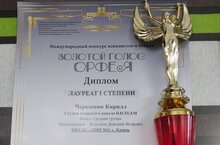 Ученик 6 в класса Черкашин Кирилл завоевал диплом лауреата первой степени в международном конкурсе вокалистов и чтецов ЗОЛОТОЙ ГОЛОС ОРФЕЯ