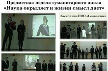 Гуманитарная неделя в 2018 году посвящена науке. Открытие недели состоялось в виде Открытого заседания НОО «Созвездие». В гости в нашу школу из XVIII века прибыл император Петр I, с чьим именем связано открытие Петербургской академии наук. Со своими визитными карточками выступили «Факультеты» НОО во главе со своими «деканами». Новые «бакалавры» прошли торжественный обряд вступления в НОО - произнесение клятвы, получение гранита науки зачетной книжки.