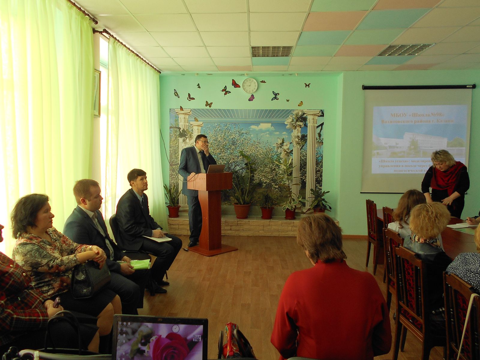 Опубликовано: 22.03.201721 марта 2017 г. на базе нашей школы прошел городской семинар. На нем бы представлен управленческий, педагогический профессиональный опыт школы №98 для директоров образовательных организаций г. Казани по проблеме «Проектирование образовательной среды «Школа успеха» как центра формирования патриотизма и гражданственности». Мероприятие проходило в рамках муниципального проекта для руководителей казанских школ «Управление школой: проектирование нового качества результатов».