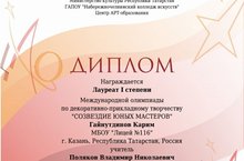 Успешно справился с теоретической частью по истории народных промыслов на территории России и соседних стран и представил завершенный проект декоративно-прикладного изделия ученик 7а класса Гайнутдинов Карим.