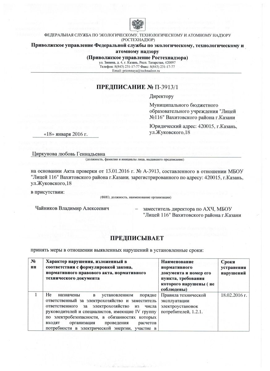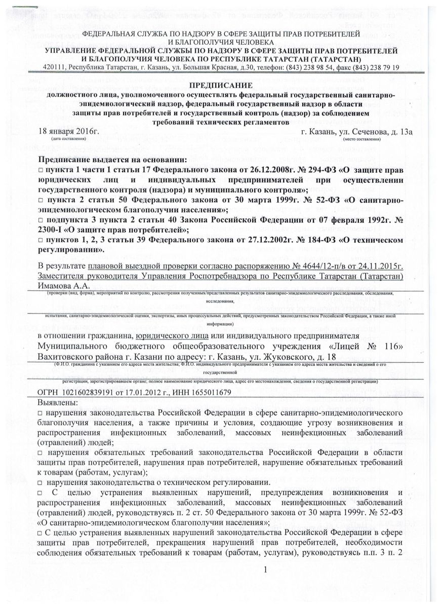 ПРЕДПИСАНИЕ ОТ 18.01.16 ЛИСТ 1, ЛИСТ 2