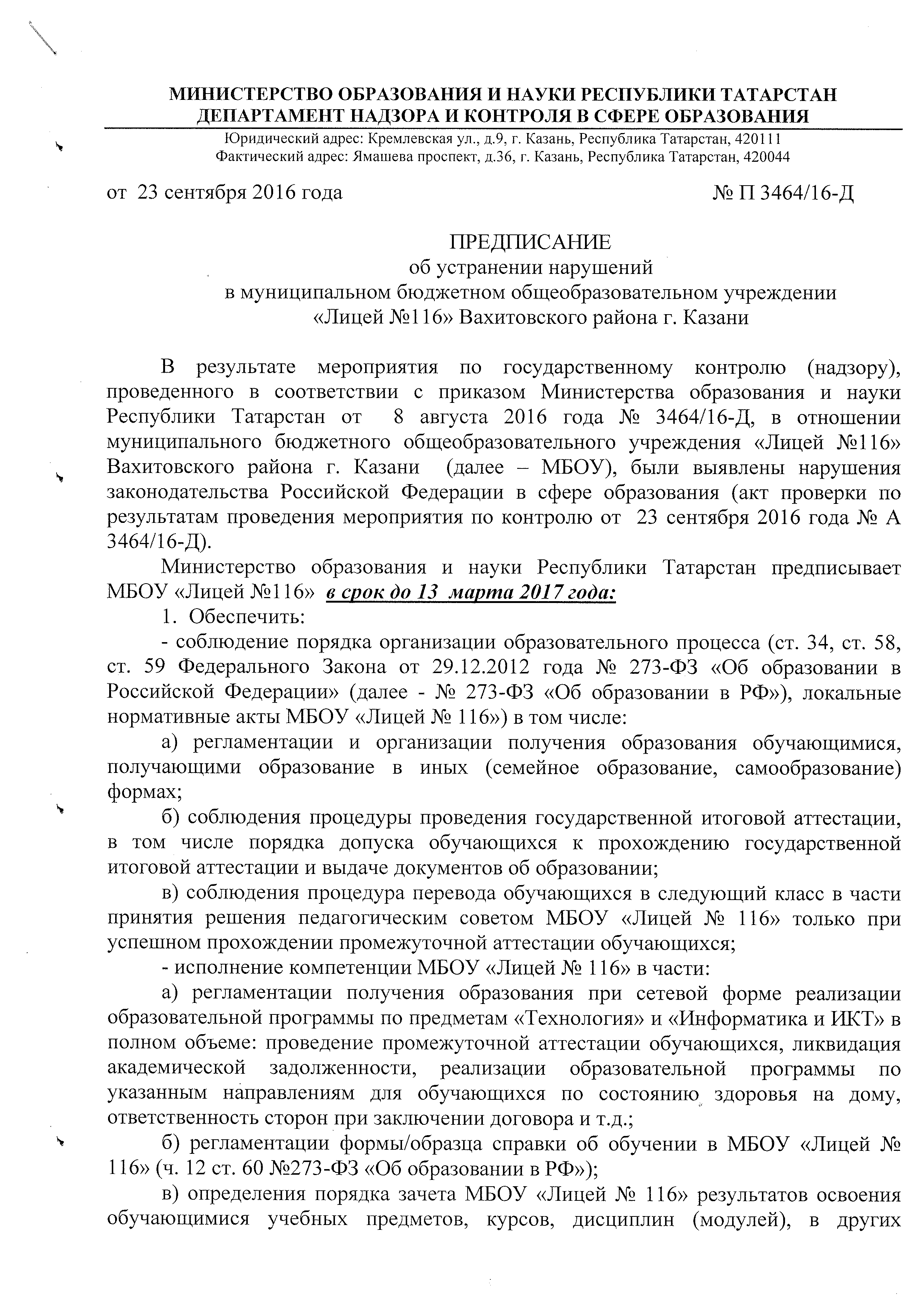 ПРЕДПИСАНИЕ ОТ 23.09.16 ЛИСТ 1, ЛИСТ 2, ЛИСТ 3