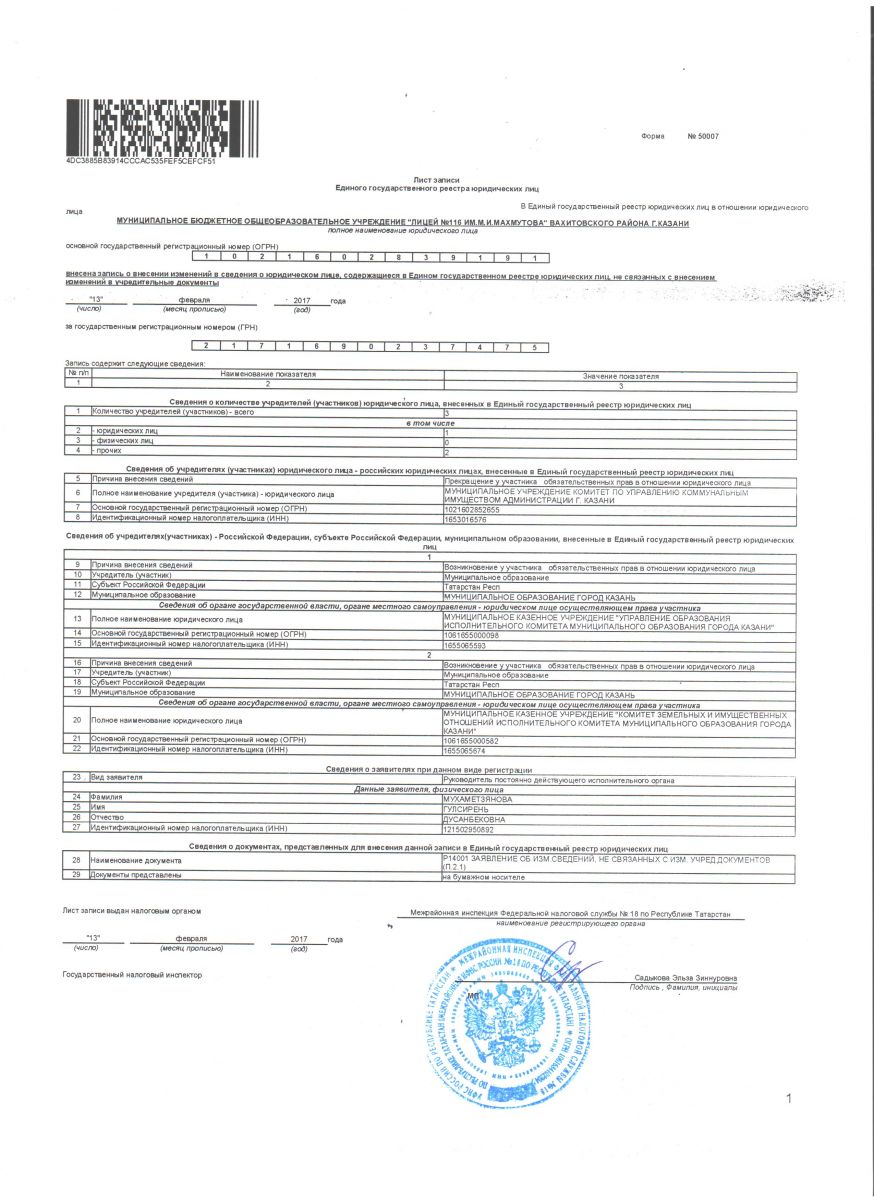 | Короткое название: | МБОУ «Лицей №116 имени Героя Советского Союза А.С.Умеркина» |