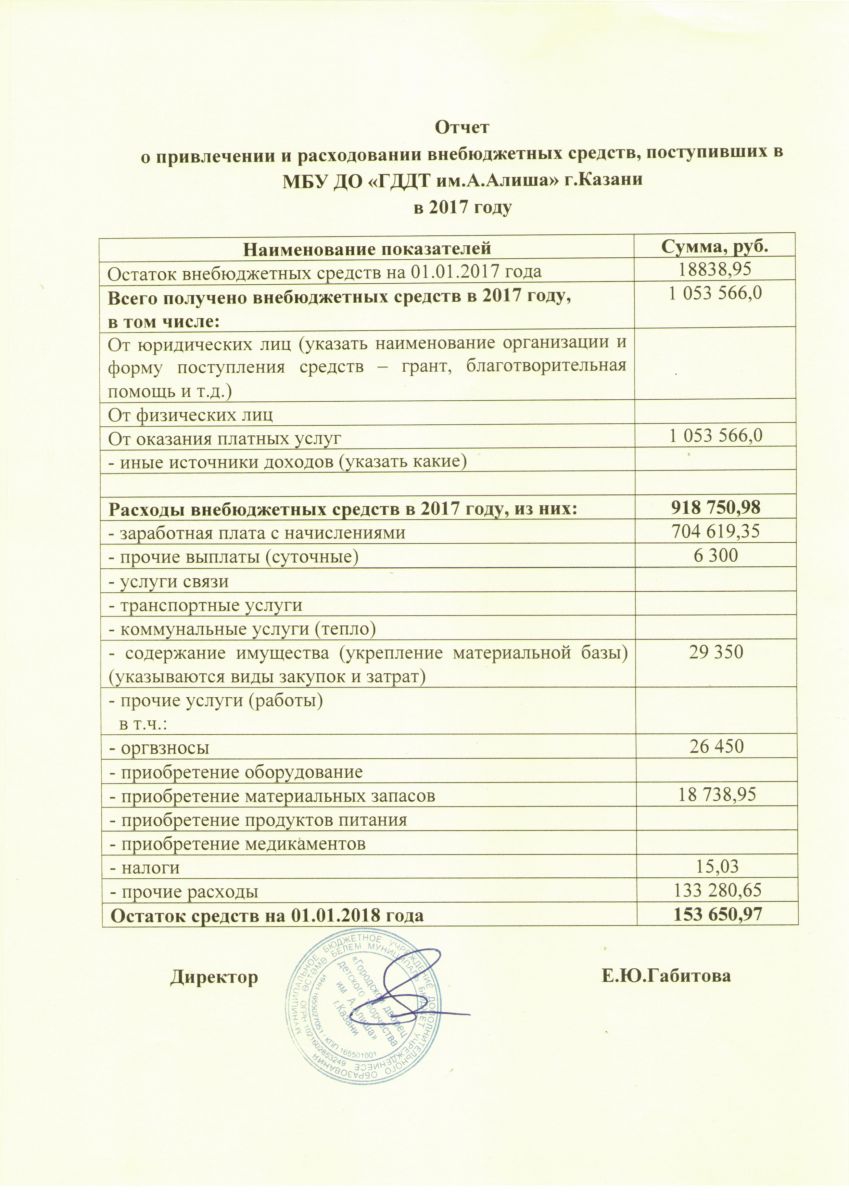 Отчет о привлечении и расходовании внебюджетных средств за 2017 год.