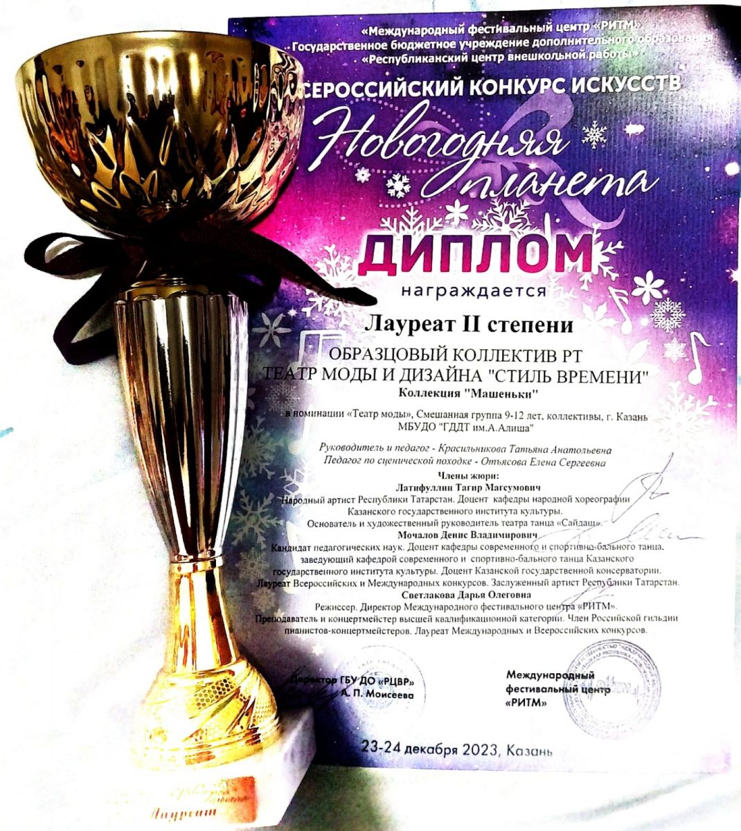 Опубликовано: 25.12.2023Поздравляем театр моды и дизайна "Стиль времени " с победой на всероссийском конкурсе искусств " Новогодняя планета" , лауреат 2 степени. Педагоги : Красильникова Т.А. и Отъясова Е. С.