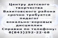 Центру детского творчества Вахитовского района срочно требуется педагог вокально-хоровых дисциплин.