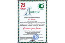 Поздравляем Фаттахову Алину, учащуюся театра-студии "Ровесник" (педагог М.Ю.Андреева) с победой в региональном этапе Всероссийского конкурса "Зеленая планета 2020", приуроченного Году Памяти и Славы в России, в номинации "Природа. Культура. Экология"!