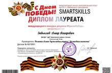 Поздравляем Завьялова Амира, учащегося студии "Волшебная кисточка" (руководитель Фоменко Алина Рустемовна), с получением диплома лауреата международного конкурса рисунков #КраскиПобеды!
