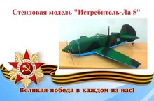 Ребята под руководством педагога Хисамовой Дианы Юрьевны создали модель истребителя Ла-5 – одноместного свободнонесущего моноплана с убирающимся шасси и закрытой кабиной.