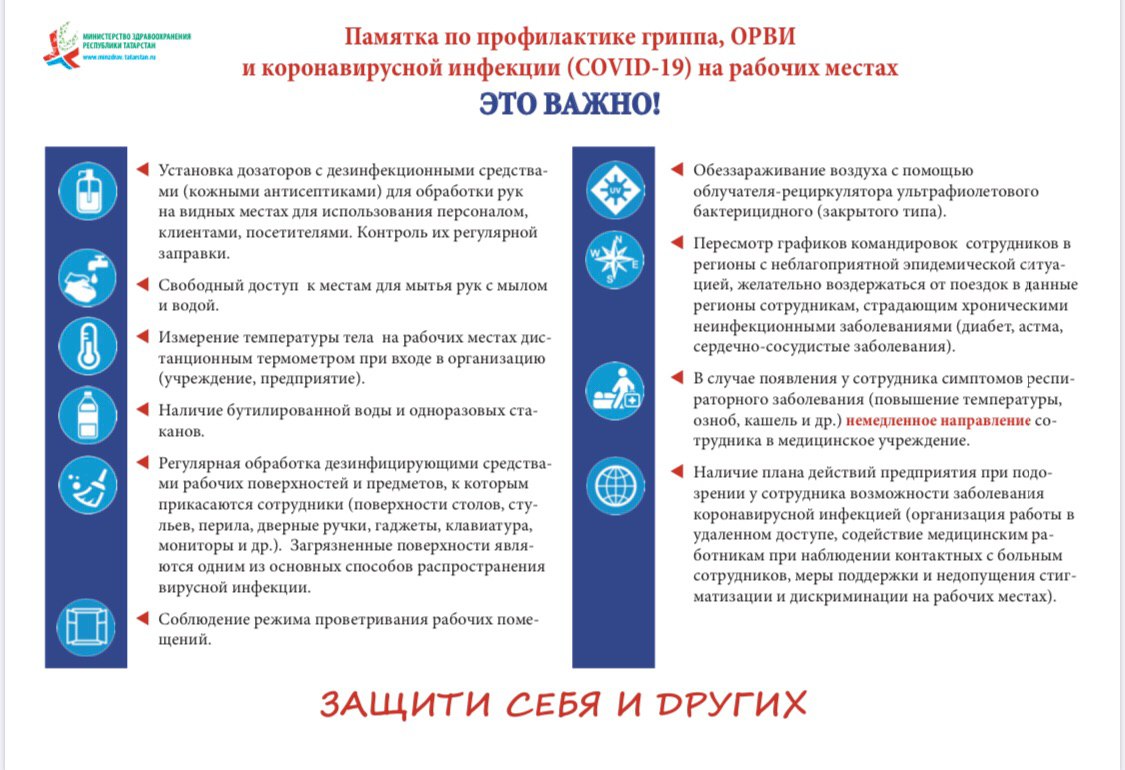 Памятка по профилактике гриппа, ОРВИ и коронавирусной инфекции (COVID-19) на рабочих местах