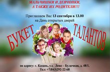 13 сентября в 13.00 все приглашаются на День открытых дверей "Букет талантов" по адресу г. Казань, ул. Лево - Булачная, д. 48/1.