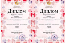 Поздравляем обучающихся студии декоративного вязания "Завиток" (педагог Егорова Е.Е.) и Кряжеву Екатерину, обучающуюся объединения "Аппликация" (педагог Байрамова Г.Г.) с Дипломами I степени во Всероссийском творческом конкурсе "Творчество народов" в номинации "Поделка". Поздравляем! Желаем дальнейших творческих побед!