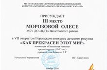 Поздравляем Морозову Олесю, обучающуюся студии «Волшебная кисточка» (педагог Фоменко А.Р.), занявшую III место в Открытом городском конкурсе детского рисунка «Как прекрасен мир»
