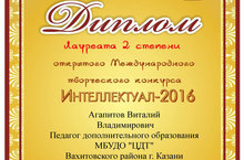 Поздравляем педагогов фотошколы «Софит» Тарвердян Алсу Ханифовну, Агапитова Виталия Владимировича, занявших II место в открытом Международном творческом конкурсе «Интеллектуал -2016»