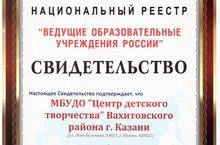Поздравляем МБУДО "Центр детского творчества" Вахитовского района г. Казани с получением Свидетельства Национального Реестрв "Ведущие образовательные учреждения России", которое подтверждает, что МБУДО "Центр детского творчества" Вахитовского района г. Казани на основании предложения Администрации г. Казани является участником Национального Реестра за 2015 год!!! Свидетельство № 1217 выдано 12 апреля 2016 года.