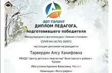 Поздравляем педагога фотошколы «Софит» Тарвердян А.Х., подготовившую трех победителей Международного фотоконкурса «Зимняя столовая».