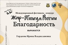 В международном фестиваль-конкурсе "Жар-птица России" лауреатами 1 степени стали учащиеся театра эстрады, сатиры и юмора "ЕрашОК" и Родионова Марианна. Выражаем благодарность руководителю Гордеевой Ирине Владиславовне!