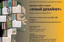Приглашаем ребят в возрасте от 12 до 17 лет на бесплатные занятия в студию компьютерного дизайна "Юный дизайнер". Окунитесь в творческий мир 2D и 3D графики. Создайте свою виртуальную реальность!