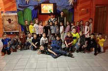 Цикл новогодних активно-игровых программ в Фант-клубе "Не CD" продолжился 25 декабря. В этот день Новый год на Диком Западе встретили ученики 1Д класса школы № 181 (на фото) и учащиеся ритм-балета "Мистерия" (руководитель Елена Евгеньевна Егорова). Пусть и в разное время, но с одинаковым удовольствием и хорошим настроением эти два коллектива совершили виртуальное путешествие в край колючих кактусов, диких мустангов, смелых ковбоев и отважных индейцев и спасли праздник, собрав тотем дружбы. Дед Мороз, впечатленный и растроганный продемонстрированным ребятами старанием, подарил им праздничную предновогоднюю дискотеку.