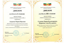 Суханову Марию Владимировну, Шарипову Алию Ильдаровну, получивших дипломы лауреатов III степени в номинации "Сценарий — Активно-игровая программа".