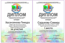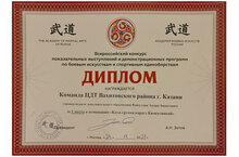 24 ноября 2021 г. в Академии боевых искусств России (г. Москва) подвели итоги Всероссийского конкурса показательных выступлений и демонстрационных программ по боевым искусствам и спортивным единоборствам. Конкурс проходил в дистанционном и "он-лайн" форматах в период с 1 по 24 ноября 2021 года. Представители 49 регионов России направили заявки и приняли участие в различных номинациях. Педагог Центра детского творчества Эдуард Завдатович Файзуллин вместе со своими воспитанниками, учащимися объединения "Карате", также заявился к участию в Конкурсе через филиал Российского Союза боевых искусств по Республике Татарстан.