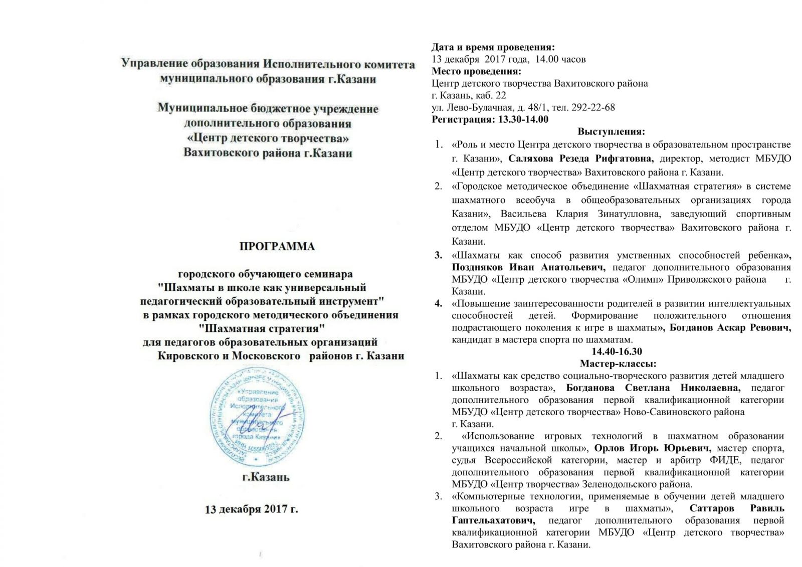 Муниципальное бюджетное учреждение дополнительного образования "Центр детского творчества" Вахитовского района г. Казани