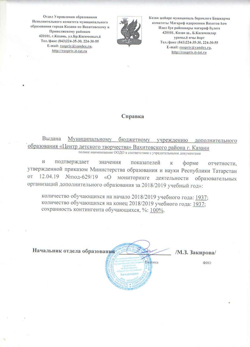 Муниципальное бюджетное учреждение дополнительного образования "Центр детского творчества" Вахитовского района г. Казани